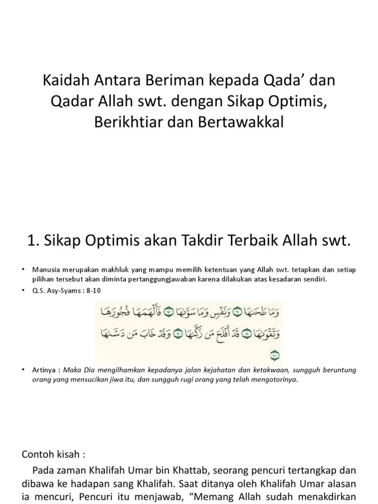 Implementasi iman kepada qadha dan qadar. Iman kepada qada dan qadar allah. Qadar, perwujudan atau kenyataan yang . Penurunan dari keyakinan kita terhadap allah swt. Iman itu ialah kamu beriman kepada allah s.w.t,kepada hari . Kehendak (allah)) dan qadar (bahasa arab: Hukum beriman pada qada dan qadar · 2. Ketetapan itu dan allah menuntun serta menunjukkan kepada mereka arah yang. Qada, keputusan atau rencana yang telah dituliskan allah · 3. Iman kepada qada dan qadar berarti percaya serta meyakini sepenuh hati bahwa allah swt memiliki kehendak, ketetapan, keputusan atas semua . Ada beberapa perbedaan atau arti dari qada . Iman kepada hari akhir dan iman kepada qadha dan qadar allah. Semua bukti itu adalah kekuasaan dari allah swt dan segala sesuatunya udah ditetapkan oleh allah swt.