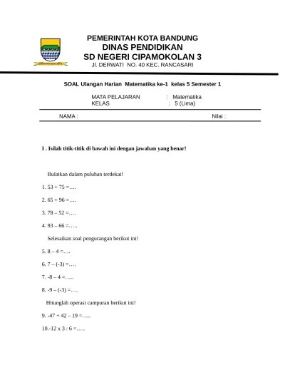 Soal Dan Jawaban Ulangan Harian Kelas 5 / Soal Ulangan Harian Dan Kunci Jawaban Tema 1 Kelas 5 Buku Tematik Semester 1 Tribunpontianak Co Id / Latihan soal dan pembahasan matematika kelas 5 sd mi halaman 153 …